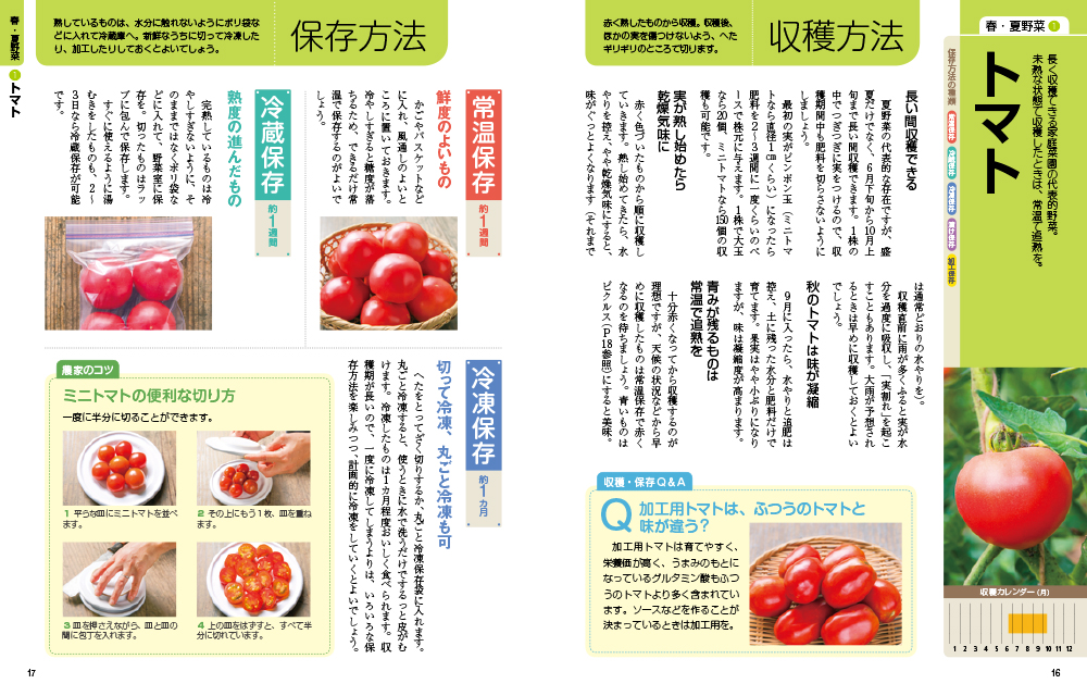 収穫のベストタイミング、長く・多く収穫するコツを伝授! たくさん採れた野菜を、保存・料理して100パーセント味わいつくせる一冊です!!