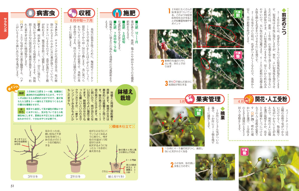 おいしい実をたくさんつける育て方が写真でよくわかります!本書では、はじめて果樹栽培にとりくむ方でも理解できるよう、専門用語をできるだけ使わずにやさしい言葉で、そして1年間を通して撮影した実作業の写真を豊富に用いて、わかりやすく解説しました。また、病害虫対策はできるだけ農薬を使わない方法を紹介しています。