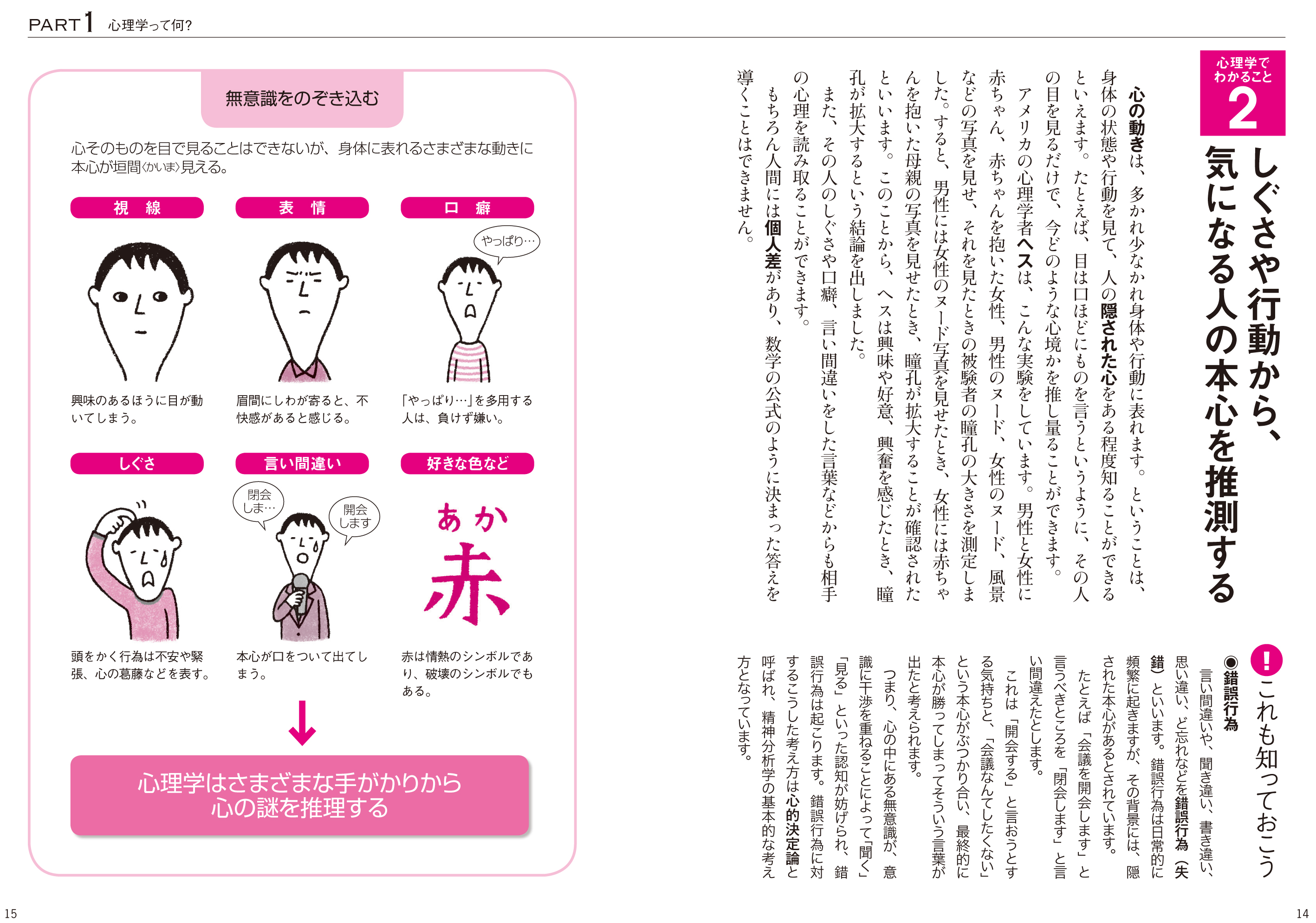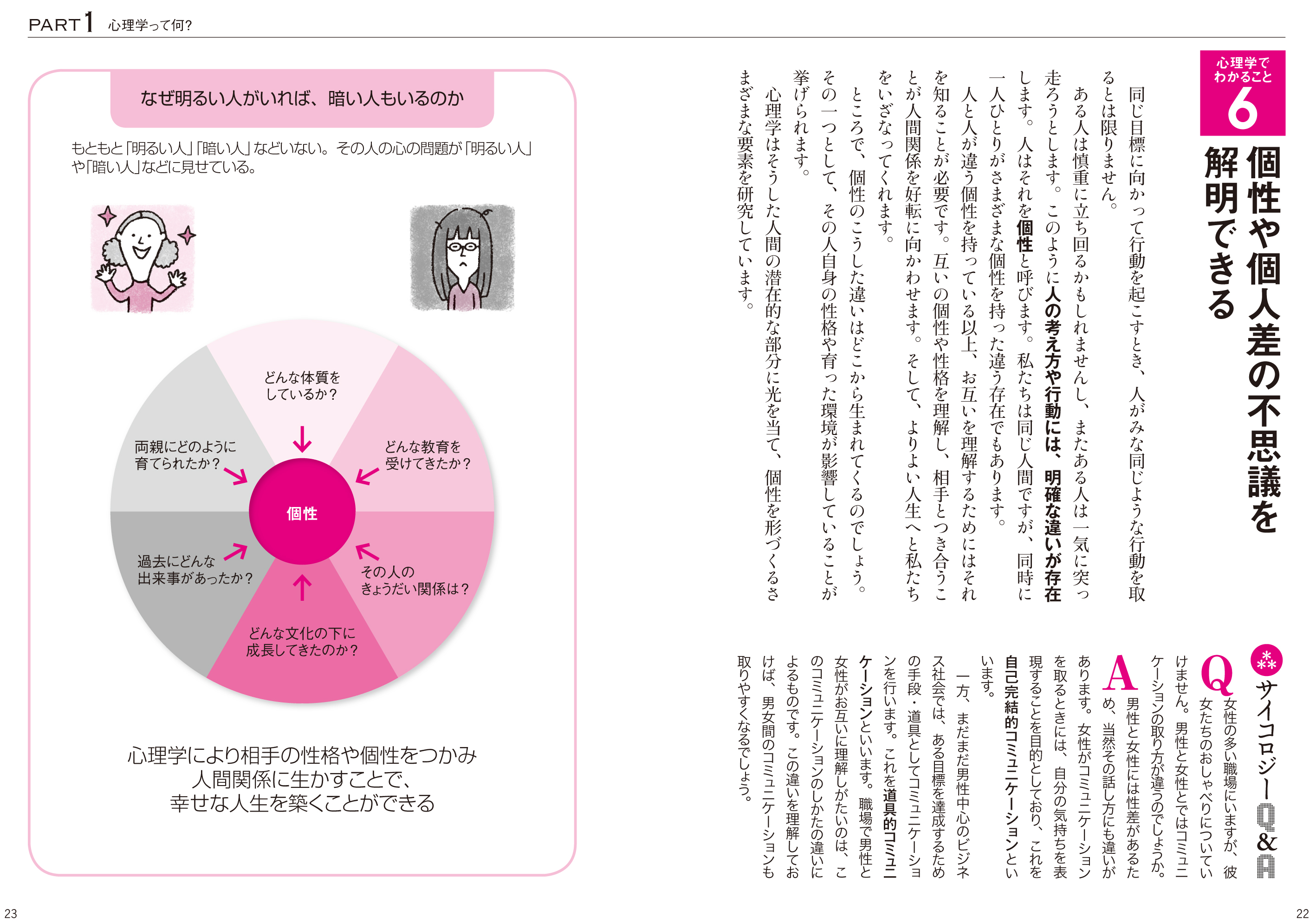 気持ち・性格・考え方・記憶力・心の病…人それぞれに違う心とは、いったい何なのか?その不思議を、テーマごとにわかりやすいイラストや図表付きで解説しました。心理学や心理学者のこと、脳のしくみ、また、人付き合いや仕事に生かせる実践的な心理分析法などもあり、充実の内容です。