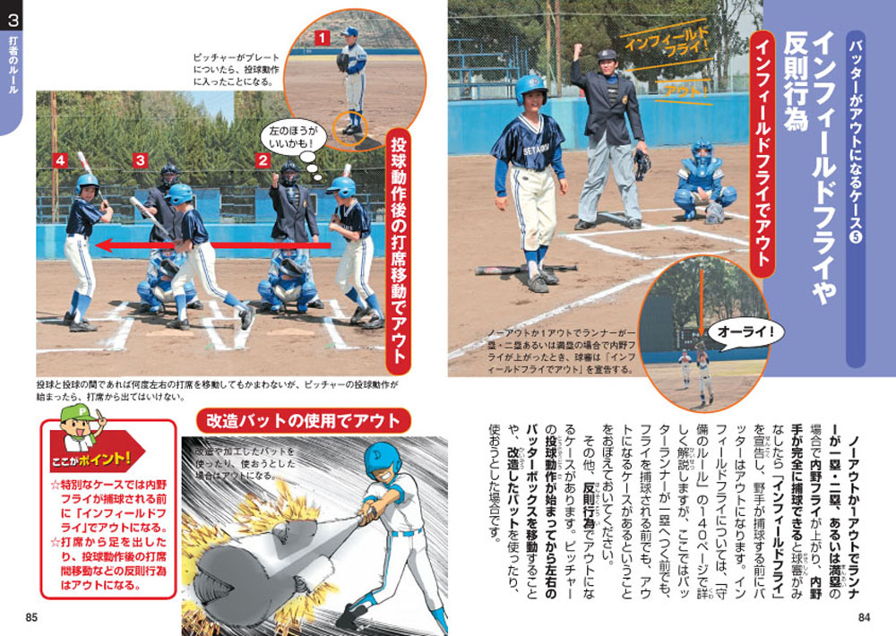 パート1 試合前のルールパート2 投手のルールパート3 打者のルールパート4 走塁のルールパート5 守備のルールパート6 記録と審判のルール
