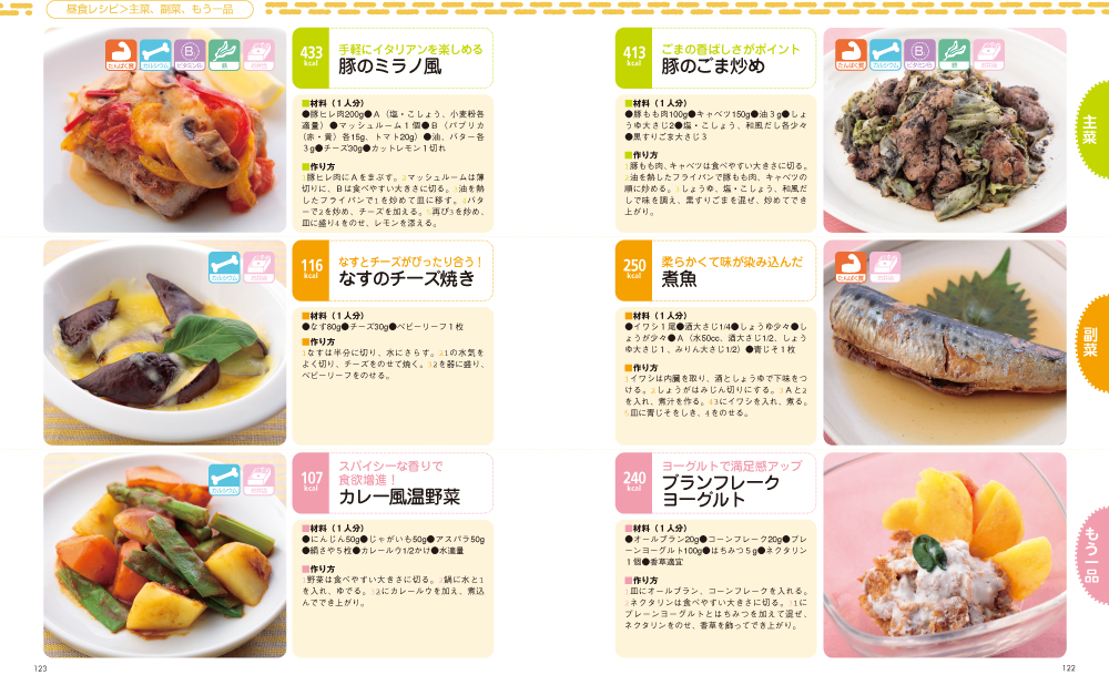 序章朝食レシピ気になるこんな時のレシピ1昼食レシピ気になるこんな時のレシピ2夕食レシピデザート&ドリンク&汁ものレシピスポーツ食Q&Aコラム スポーツとおいしい関係