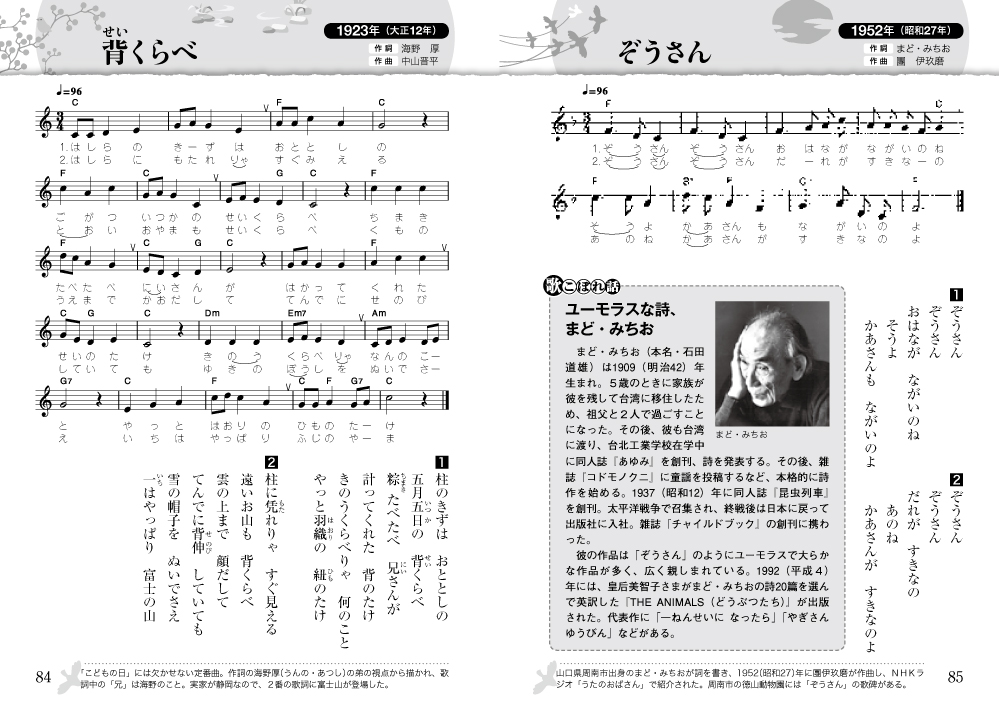 *本書は、弊社刊「決定版 童謡・唱歌・思い出の歌」(2009年5月発行)を再編集し、書名・判型を変更のうえ、特別付録としてCDを付けたものです。