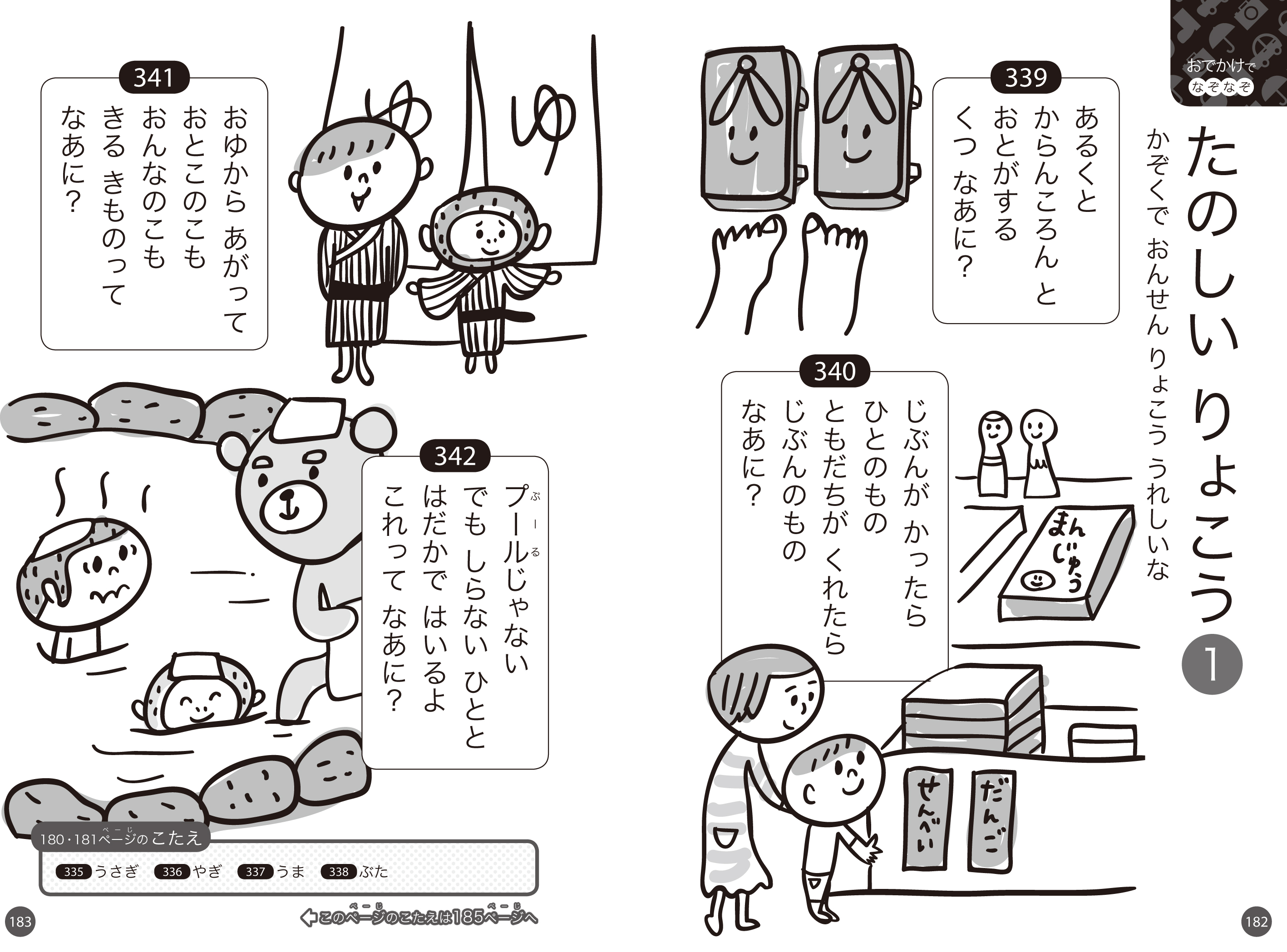 おうちでなぞなぞようちえんでなぞなぞおでかけでなぞなぞたべものでなぞなぞぎょうじ・いきものでなぞなぞことばでなぞなぞ