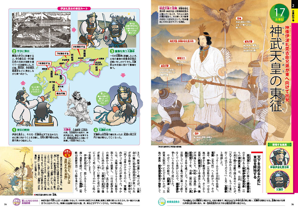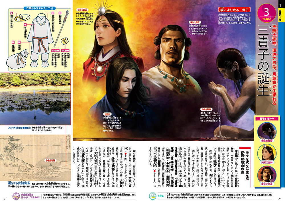厳選42テーマを、500点を超える絵画・CG・写真を使って再現しました。『古事記』『日本書紀』は、天皇家の歴史が記される日本の現存最古の散文文芸作品といっても過言ではありません。 天地の始まりや神々の誕生秘話、世界の出来事などの情報が満載。有名神社も多数紹介しました。『古事記』『日本書紀』がよくわかる必携の一冊です。