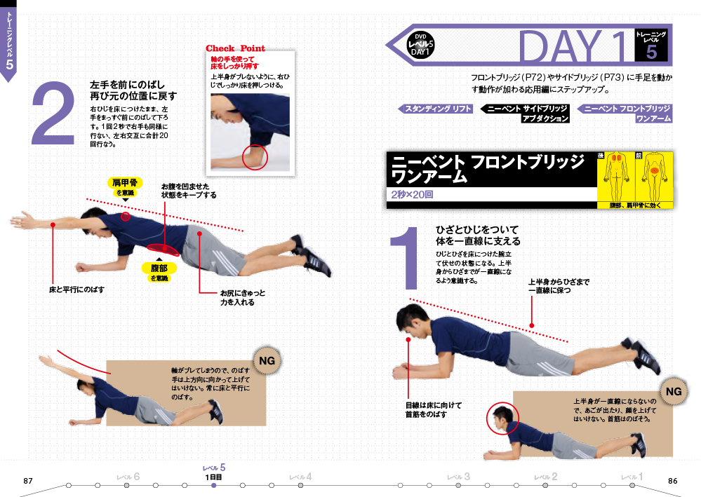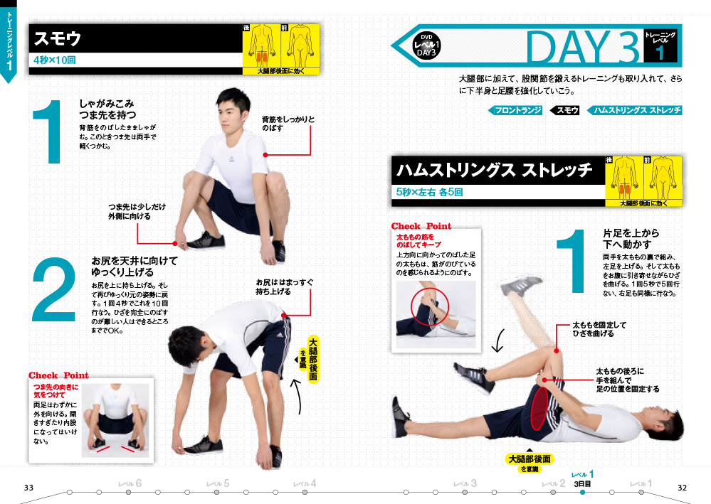 EXILEメンバーほかのアーティストやアスリートのフィジカルトレーナーとして活躍する吉田輝幸氏の本。1日3分×週3回で、かっこいい細マッチョな体を手に入れるための体幹トレーニングを解説しています。この体幹トレーニングは、機能的でムダのない動きができる体を作ることを目的としており、これによって、全身の筋肉のバランスが整い、引き締まった体へと変わっていくことを目指します。65分のDVDでトレーニングスタート。