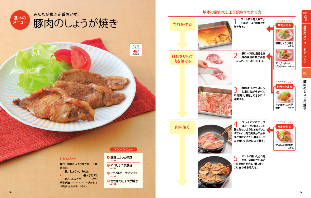 「レパートリーが少ない」「レシピを見ないと作れない」「マンネリになってしまう」、そんな人のために1つのメニューからレパートリーが豊富に広がるアレンジ術を紹介。かんたん!便利!なアレンジレシピも満載です。