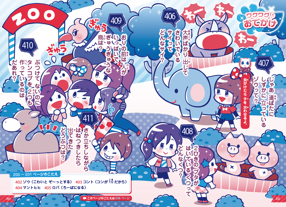 女の子のなぞなぞシリーズに1・2年生向けがついに登場! 主人公の女の子が、おともの白ネコちゃんと一緒に成長していくマンガストーリーと共に、スクールファッションやおでかけ、クッキング、メルヘンチックな世界がいっぱいのなぞなぞが楽しめます!