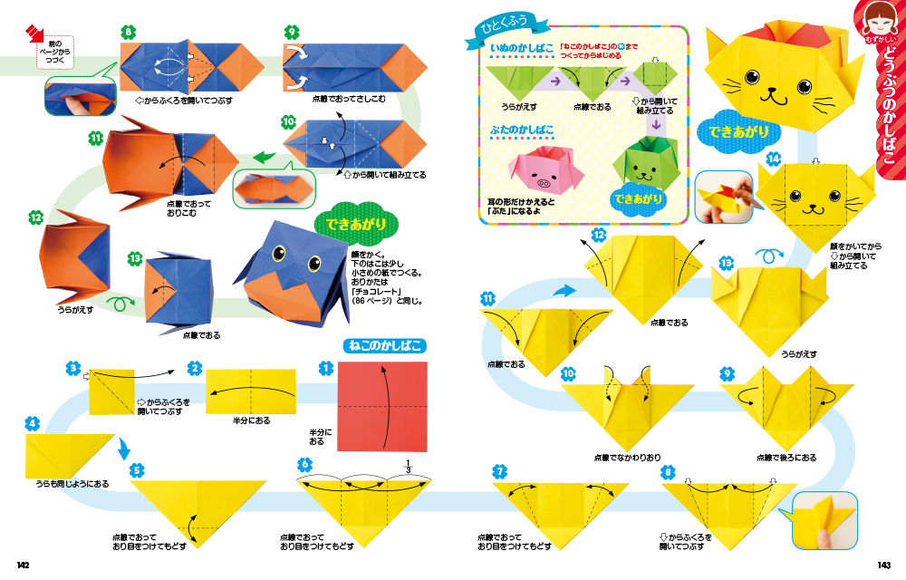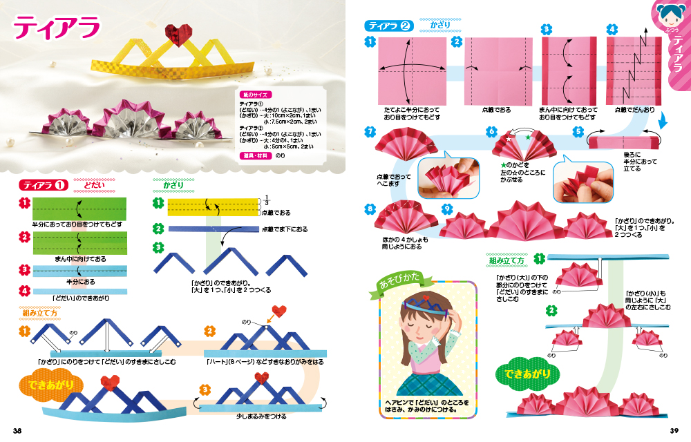 女の子の大好きな、スウィーツから、着せ替えて遊べるお洋服のおりがみ、身に着けてセンスアップできる可愛いおりがみが満載! 親子でコミニュケーションを取りながら、紙一枚で無限の想像力を感じてください!!