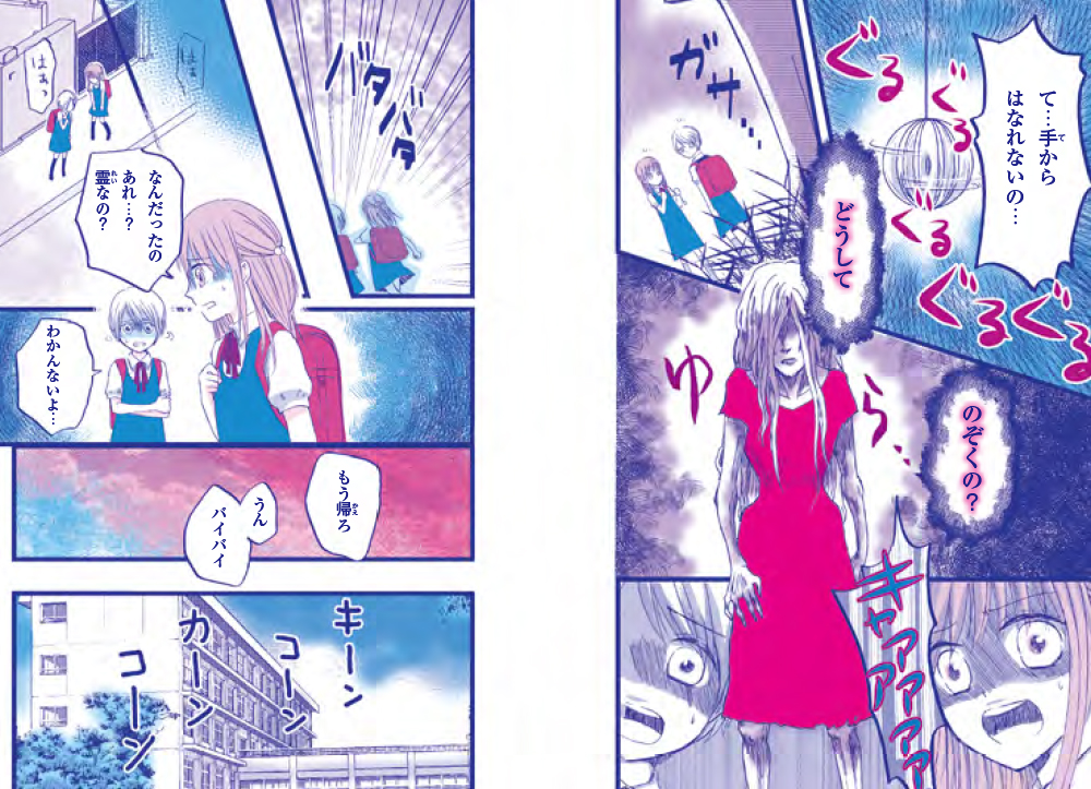 恋愛、学校、心霊体験、友情、異空間など、様々なジャンルの恐怖ストーリーをマンガで読める一冊です。恐怖を封印する天使のお守りしおりつき。