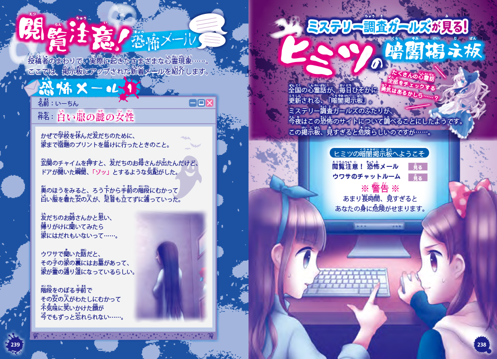 恐怖のトビラが開くとき 恐怖のトビラ1 恋愛×恐怖 恐怖のトビラ2 学校×恐怖 恐怖のトビラ3 心霊現象×恐怖 恐怖のトビラ4 友情×恐怖 恐怖のトビラ5 異空間×恐怖 おわりに