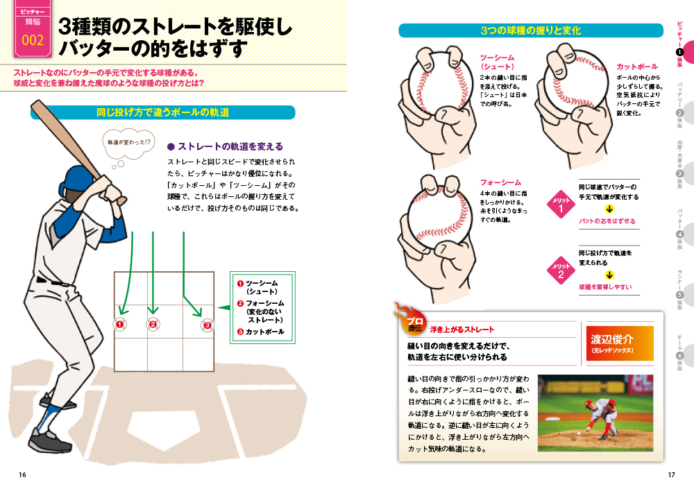 「プレイヤー」、「観戦者」、「指導者」、野球に携わるすべての人に贈る至極の一冊が登場! 「プロ直伝」、大リーグで活躍した元メッツの吉井氏や、広島カープの前田健太投手など、多数名選手のワザをコメントとともに紹介します。