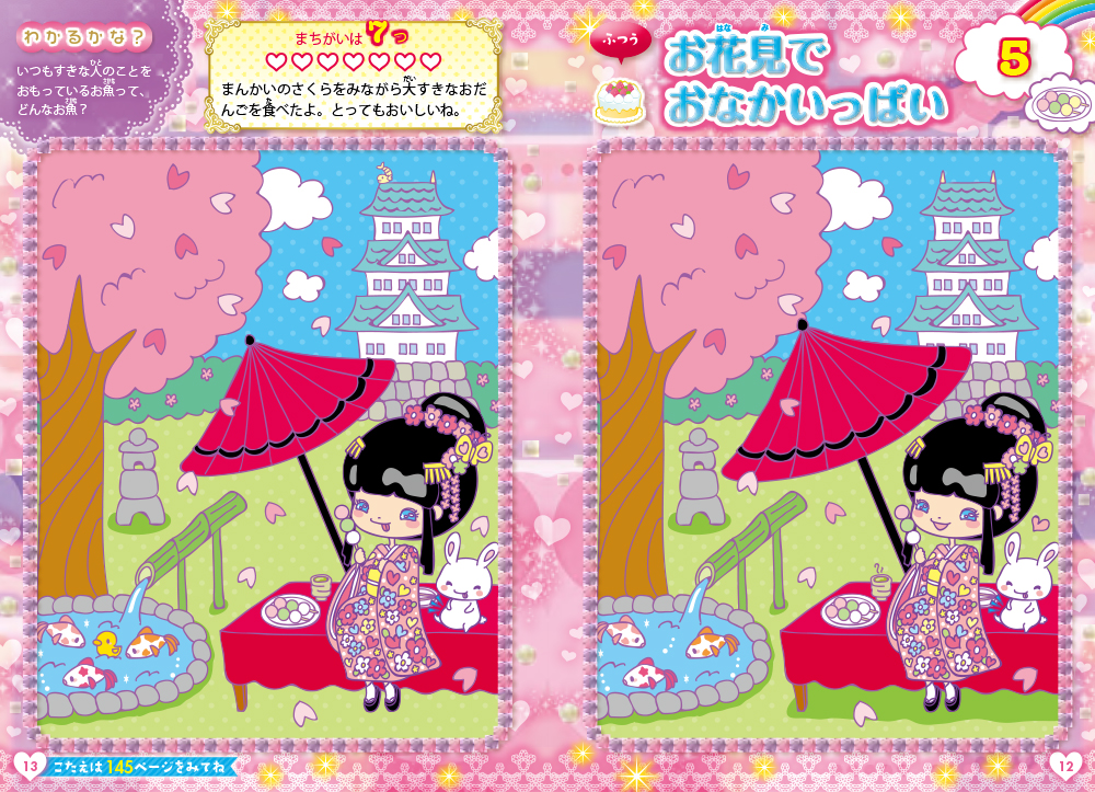 女の子が大好きな、ラブリーでカラフルなイラストがいっぱい。ファッションショーやお花見、いろんな世界や場所でのまちがい探しが楽しめます。*本書は、当社刊『ラブリーまちがいさがし』(2010年8月発行)を再編集し、書名・判型・価格を変更したものです。