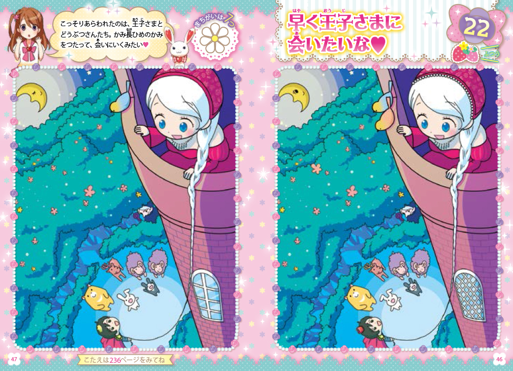 女の子が大好きな、ラブリーでカラフルなイラストがいっぱい。「めいろ」や「みっけ」もついていて、たのしさ満載です。*本書は、当社ロングセラー『女の子のまちがいさがし』(2008年12月発行)、『かわいいまちがいさがし』(2009年8月発行)を再編集し、新しい問題を加え、書名・ページ数・価格等を変更したものです。