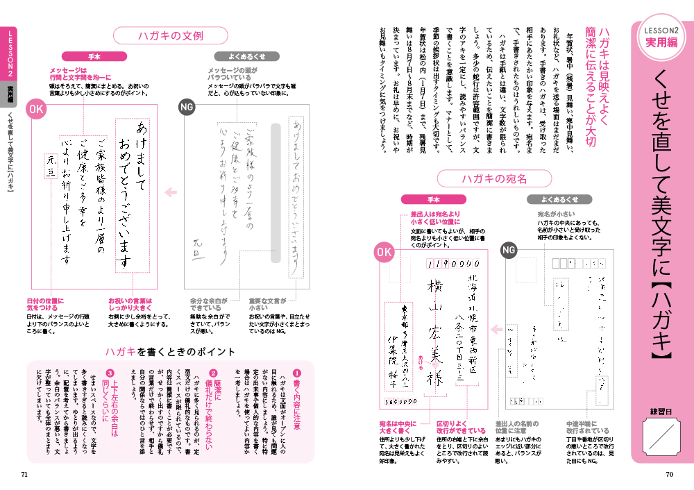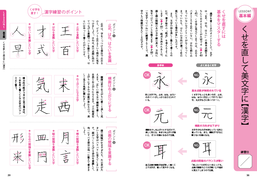 くせ字を直すと、さまざまなシーンで美文字を生かすことができ、書くことが楽しくなります。手書きを通して、大切な人へ心やメッセージをつたえてみませんか?☆ 練習用紙ダウンロードサービス付