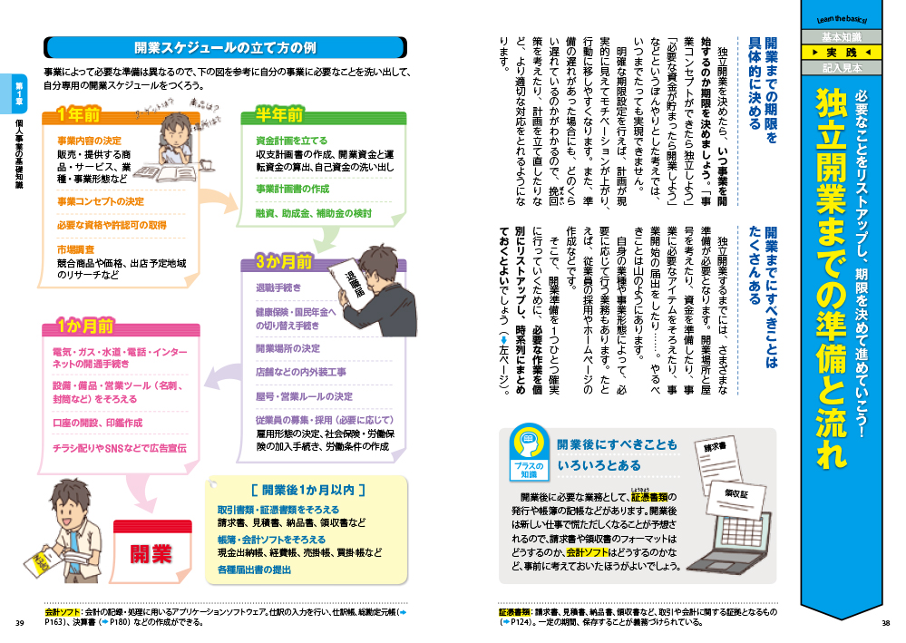 失敗しない独立のためのポイントをマンガでわかりやすく解説! ケーススタディで起業に必要なことがすべてわかる! オールカラーで図解・届出が見やすい!!