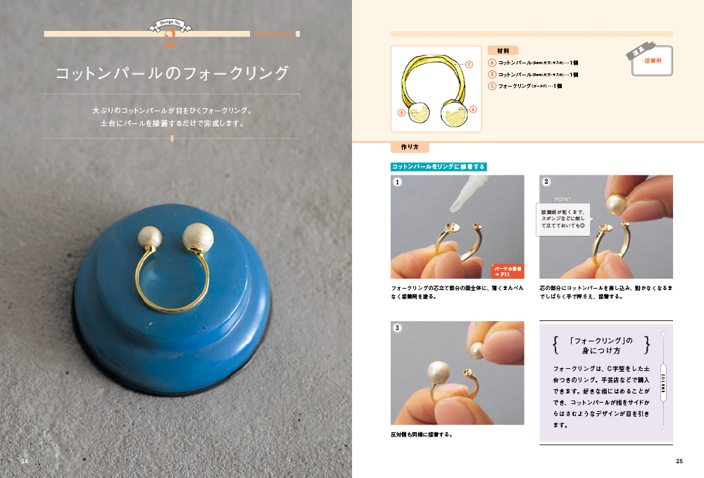 綿を圧縮し、表面をコーティングして作られる「コットンパール」。とても軽くて、やわらかい質感でナチュラル、アンティーク、カジュアルなどどんなテイストにも合わせやすいのが魅力! 本書では全行程を写真付きで解説しているので、アクセサリー作り初心者でも安心して自分だけのオリジナルが作れます!