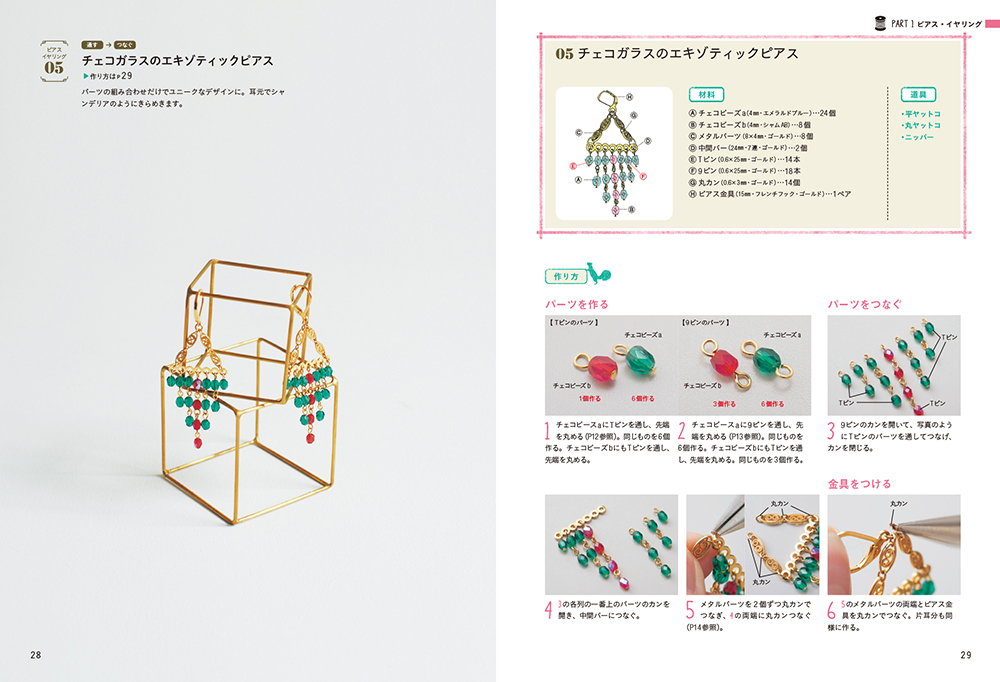 ピアス、ブレスレット、ネックレス、リング、ヘアアクセサリー、ブローチなどおしゃれでかわいいアクセサリーの作り方をていねいに解説! パーツをかえればあなただけのオリジナルアクセサリーに!!