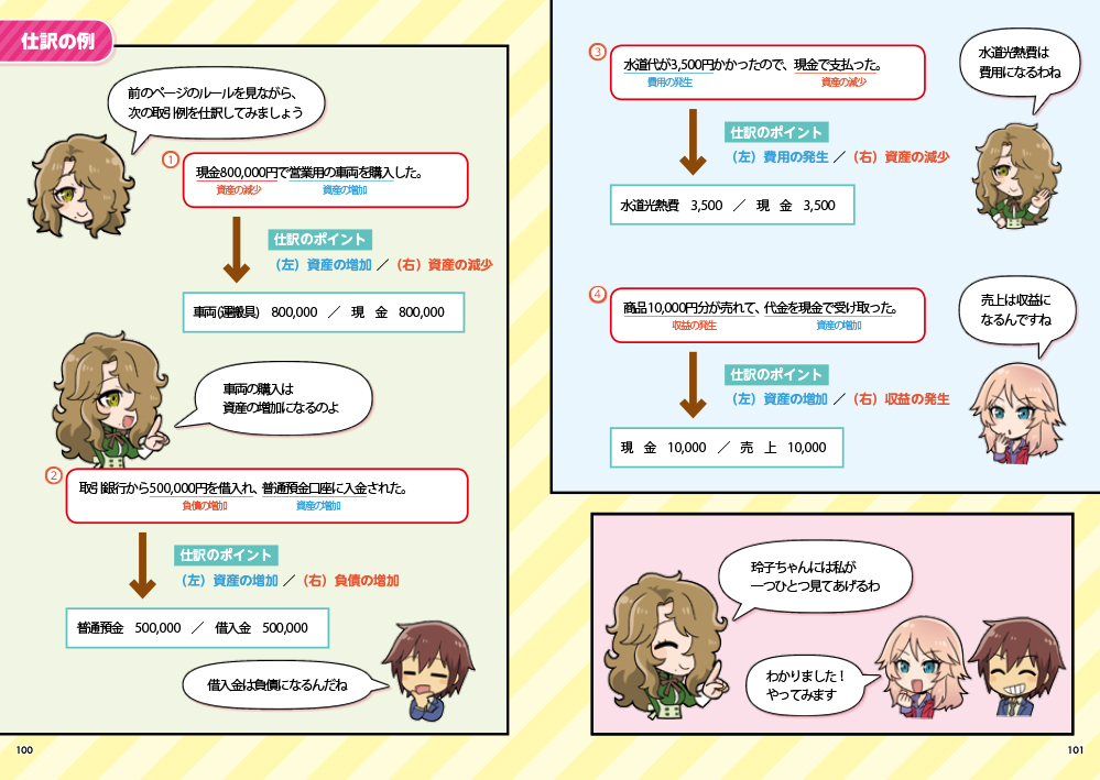 簿記をまったく知らない人も、マンガを読み進むうち、いつのまにか簿記の考え方が頭に入ってきます。マンガの主人公といっしょに、簿記のルールから日々の仕訳・帳簿の記帳、決算書を作るまでを実践的に見ていくことができます。