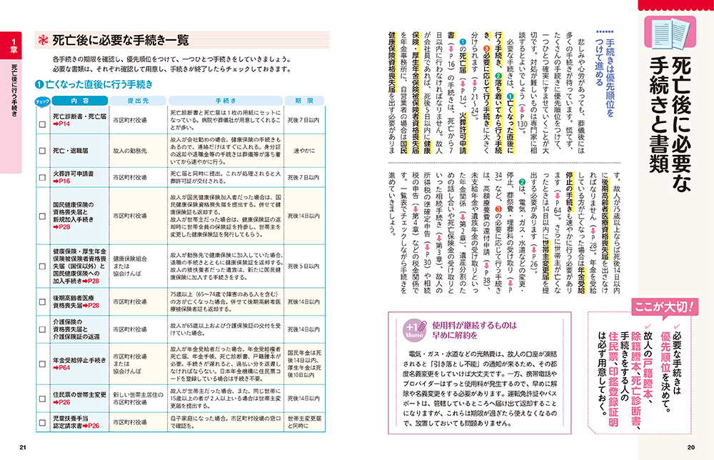 第1章 死亡後に行う手続き第2章 公的年金の手続き第3章 遺産相続の手続き第4章 相続税の支払い第5章 亡くなる前に考えたいこと