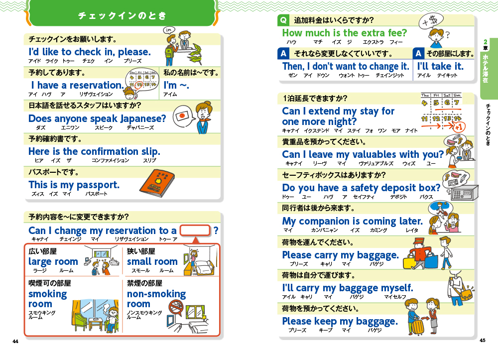 ◎すぐに役立つ!便利フレーズ&単語本書の見方と使い方【1章】空港・機内での会話【2章】ホテル滞在での会話【3章】レストランでの会話【4章】買い物・観光のときの会話【5章】トラブルのときの会話