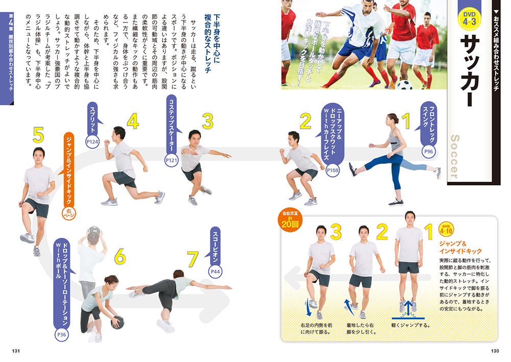 運動前には動きながら行う「動的ストレッチ」が効果的。本書は、さまざまな「動的ストレッチ」を、部位別にどんな筋肉や関節に効くか、競技別に特化してどんなストレッチが効果的かを詳しく解説しています。そのすべてをDVDでも見ることができ、ひとりでも正しいやり方をマスターできます。