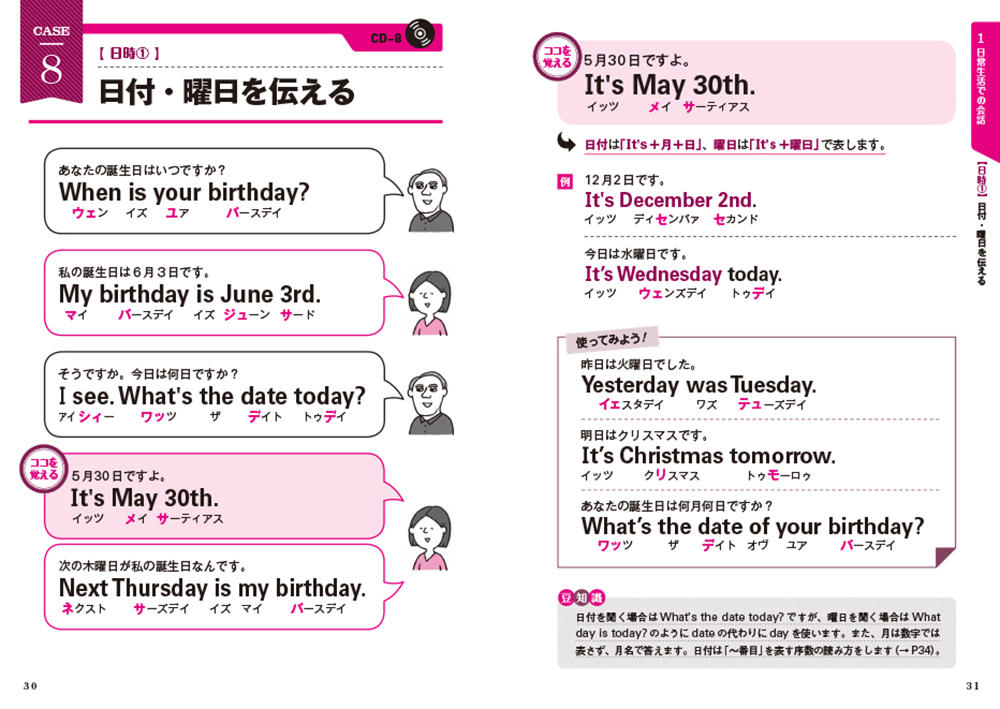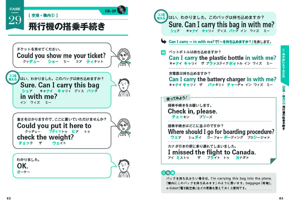 対話形式で英語を学ぶ→よく使うフレーズのポイントを解説というわかりやすい構成で使えるフレーズが効率的に身に付きます。
