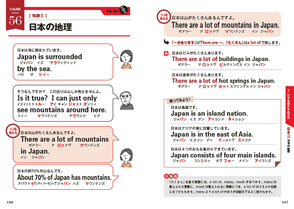 対話形式で英語を学ぶ→よく使うフレーズのポイントを解説というわかりやすい構成で使えるフレーズが効率的に身に付きます。フレーズはできるだけ短い英語で紹介しているので、英会話初心者でも安心です。
