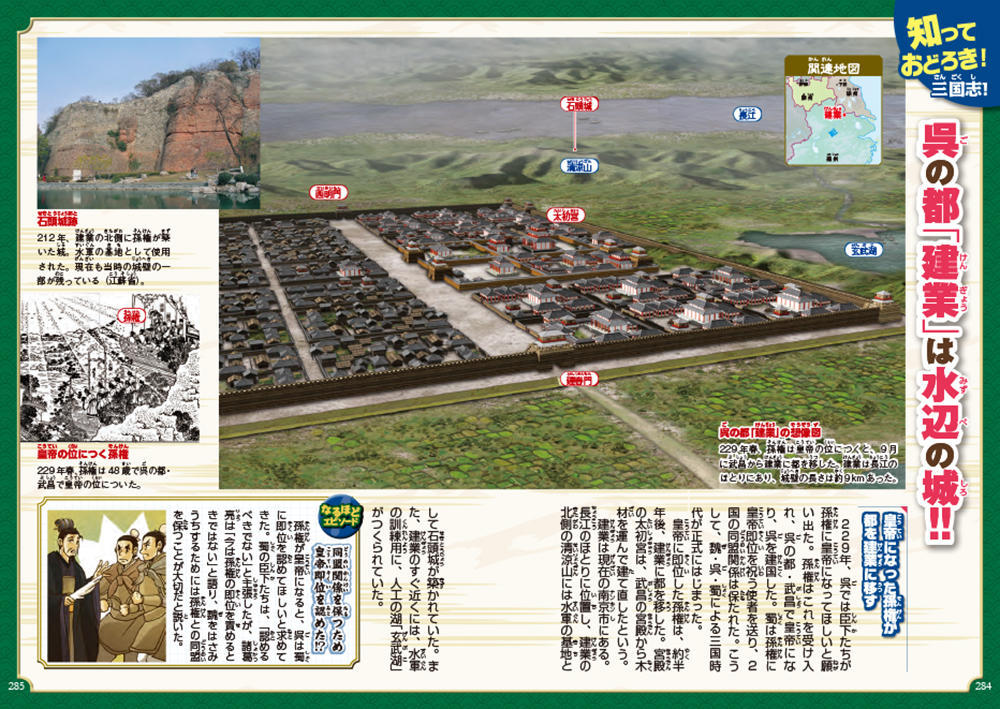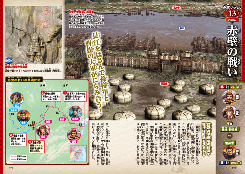 大迫力のCGで、黄布の乱や赤壁の戦いなど歴史的名場面をリアルに再現しました。肖像など写真資料も満載です。