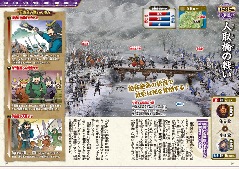 迫力あるマンガ、かっこいいイラスト、ためになる歴史資料が満載です。合戦、鎧、城など、戦国時代の知識もいっぱいで読みごたえ◎