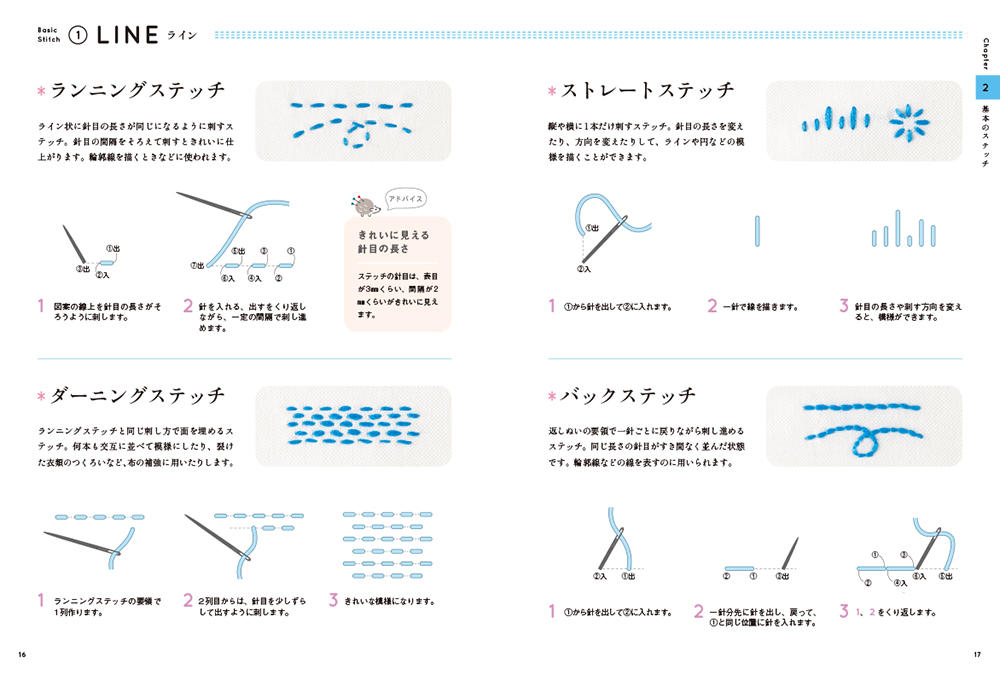 監修である川畑先生の教室で、よく耳にする悩みや、実際に教えている中でこうしたほうがいいと思うことをふんだんに取り入れ、初心者でも無理なく、失敗せずに仕上がるコツを豊富に掲載しています。・ひとつひとつのステッチの刺し方はもちろん、作品を作るときに、きれいに仕上がる方法を、失敗例と比較して紹介します。