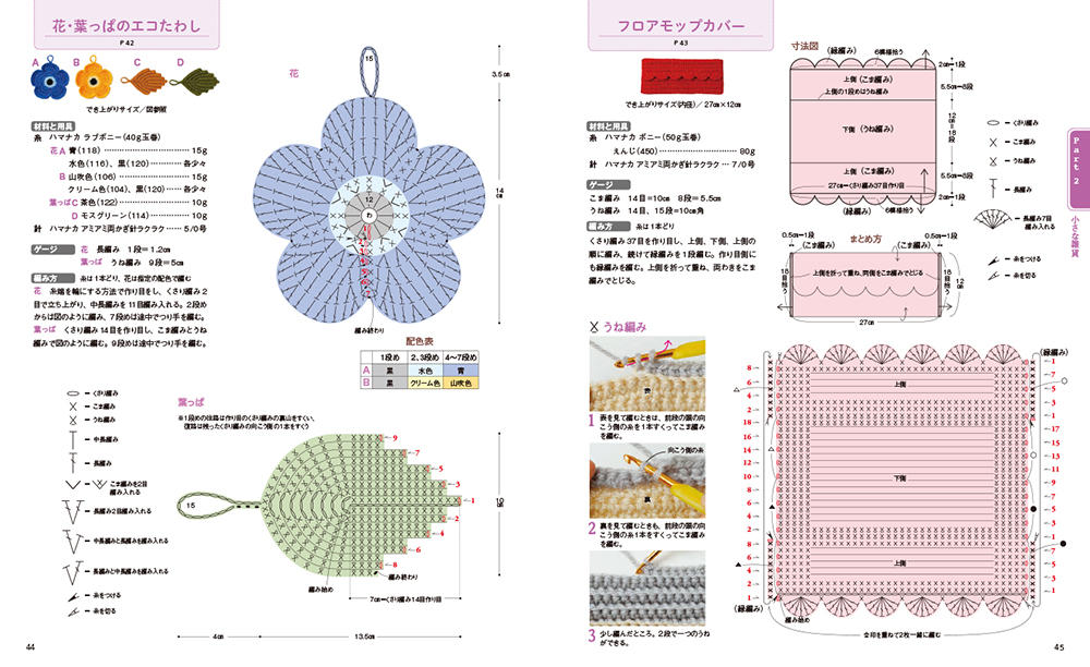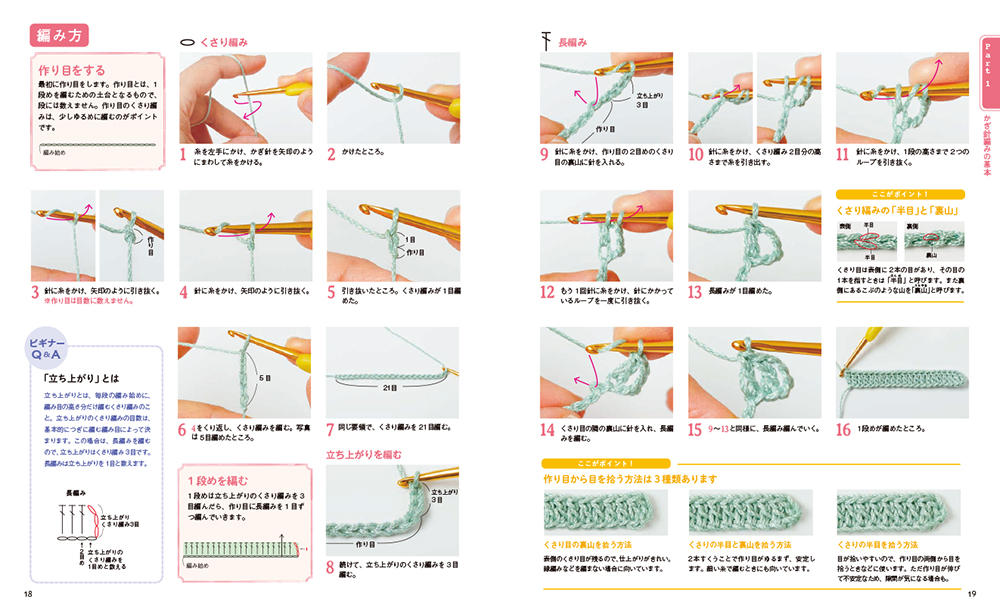 かぎ針編みの基本の解説も充実。丁寧でわかりやすい工程写真が豊富です。