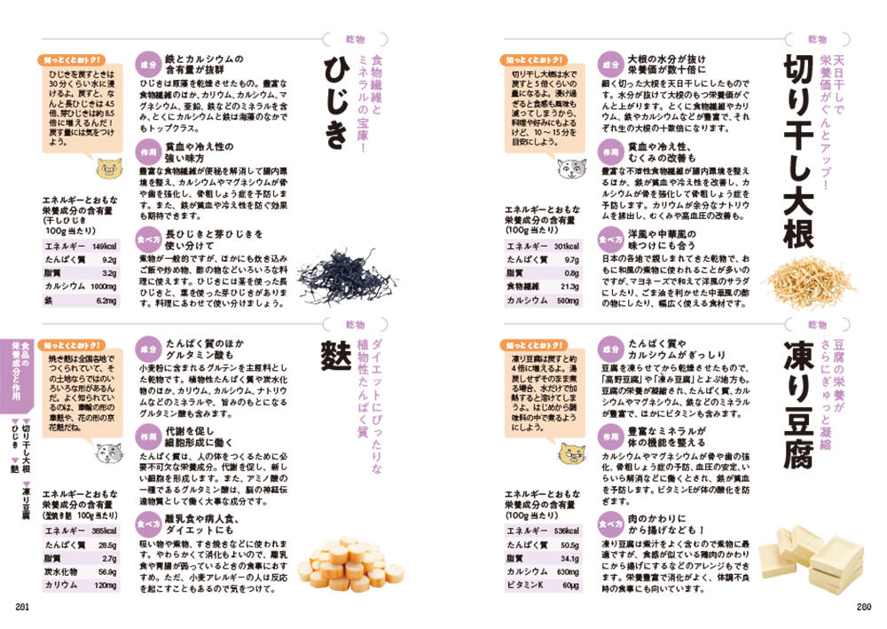 食品ごとの栄養成分や栄養を逃さない調理法など、