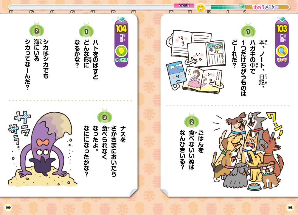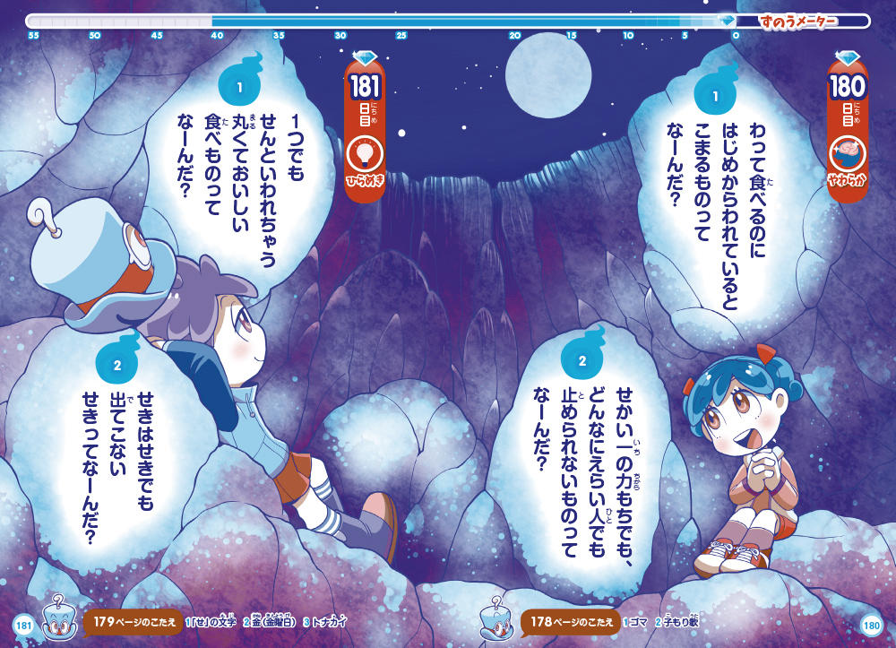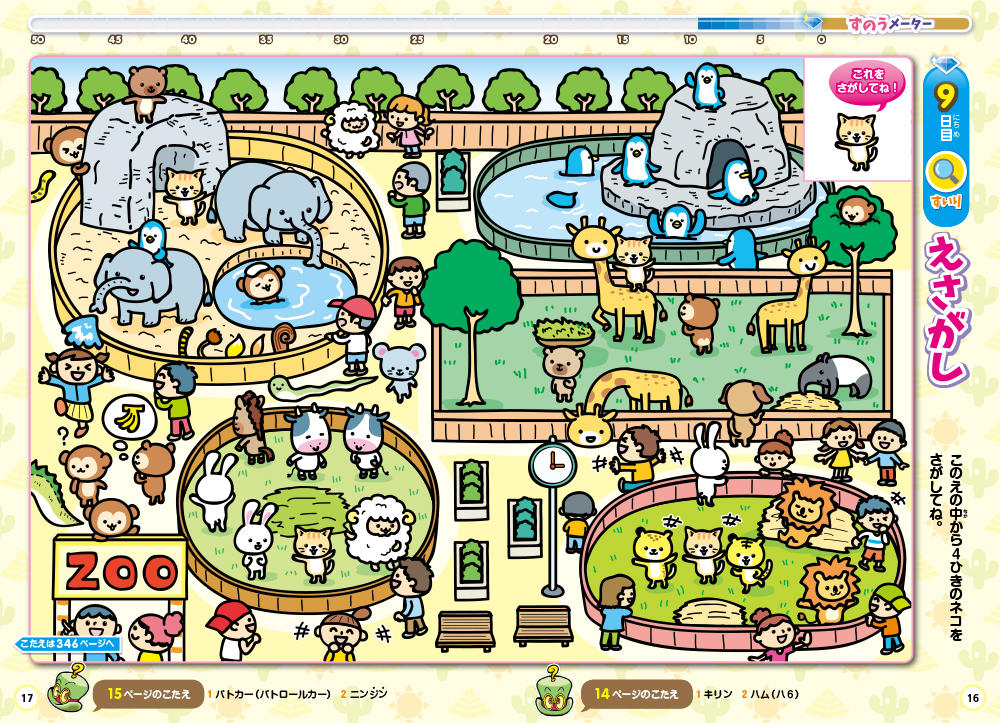 どんどん難しくなるなぞなぞステージを二人は無事にクリアできるのか、まちがいさがし、めいろ、えさがしなど様々ななぞなぞを解くことで。どんどんアタマが鍛えられる!
