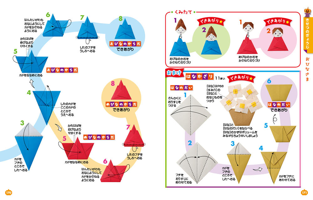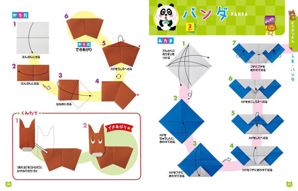 どうぶつえんの人気者や昆虫など、子どもが思わず夢中になる、おって、かざって、あそんでたのしい作品が満載です。