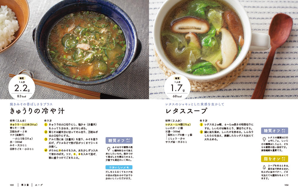 「ゆるやかローカーボ(糖質制限)食」を提唱する灰本クリニック灰本先生監修の無理なく続いて健康になれる!簡単おいしい糖質オフレシピ!日々の献立作りで使いやすいように、主菜・副菜・汁物などのレシピを食材別で紹介しています。これから糖質オフを始めたい人にもわかりやすい、糖質オフの基本知識と、糖質オフの主菜・副菜・汁物・ご飯もの・デザートのレシピが満載。食材別で紹介することで、作りたい料理が検索しやすくなっています。毎日の献立で使いやすいよう、使う材料や調味料も家にあるもので作れます。