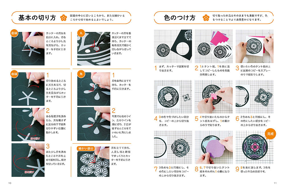 業界初!切り絵をやったことない人でも安心。切り取ってそのまま切り絵ができる作りやすい本になりました。お部屋に飾ったり、しおりにしたり、プレゼントにも!