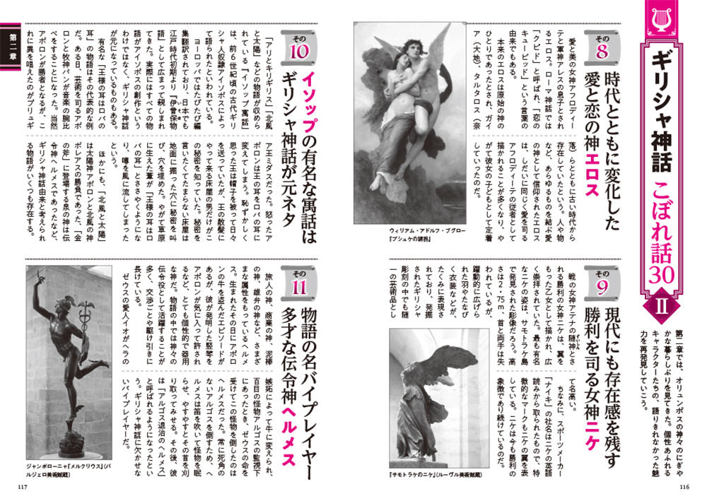 そのほか、星座や芸術など、現代にも息づくギリシャ神話との関連や、神々のプロフィールもわかりやすく紹介した充実の内容です。