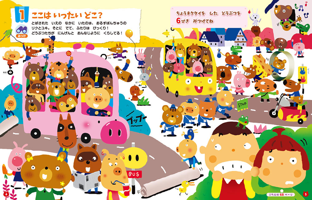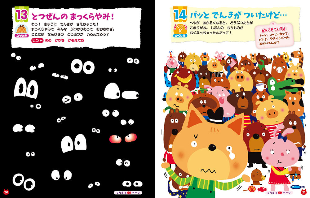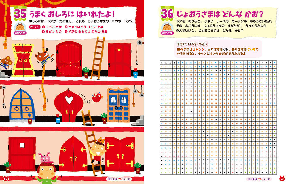 1冊でたくさんのあそびが楽しめ、想像力・集中力・思考力が楽しみながら身につきます。