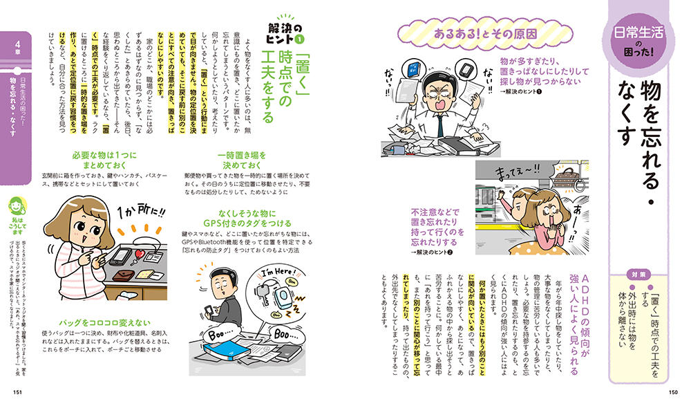 一生懸命しているのに、仕事でケアレスミスばかりしてしまう…。遅刻癖が直らない…。人のことを怒らせてしまうことが多い…。なんだかもう、いろいろなことがうまくいかない…。もしかして私、大人の発達障害かも?大人の発達障害と診断されたけれど、どうしたらいいの? この本は、そんなあなたのための本です。 視力が落ちてきたら眼鏡をかけるのと同じように、あなたの「困った!」によりそう道具や工夫をわかりやすく紹介しています。 イラストで読みやすく、困ったところだけすぐに引けます。困ったとき、あなたの傍で助けになる本です。