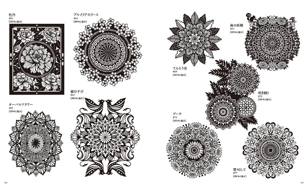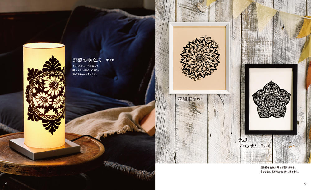 ●巻末に全図案の絵柄を掲載し、何度でも切り絵を楽しめます。