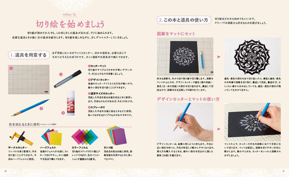 ●全作品、切り取ってすぐに楽しめる図案入り用紙つき。