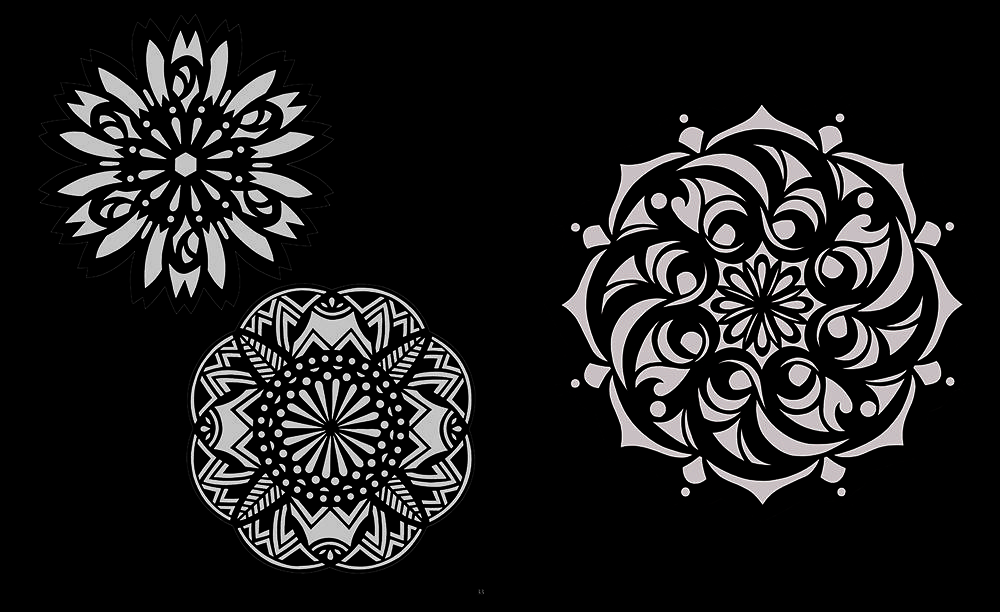 今回は花曼荼羅をテーマに、黒、赤、白、3色の切り絵が楽しめます。