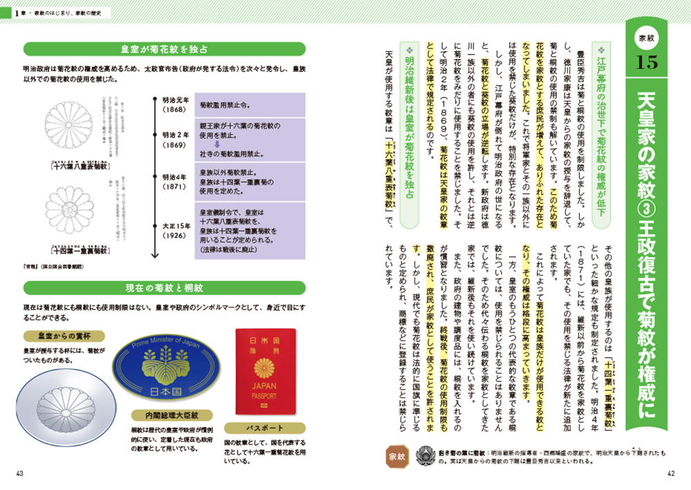 オールカラー&豊富な図解・イラストで、日本の家紋と名字の歴史、成り立ち、現在などをひも解いていきます。