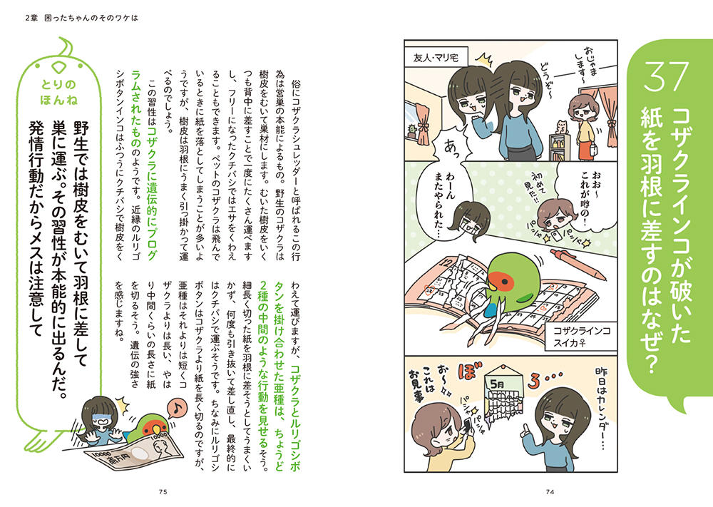 ●飼い鳥のほんねをマンガ+解説文の100問100答形式で紹介!