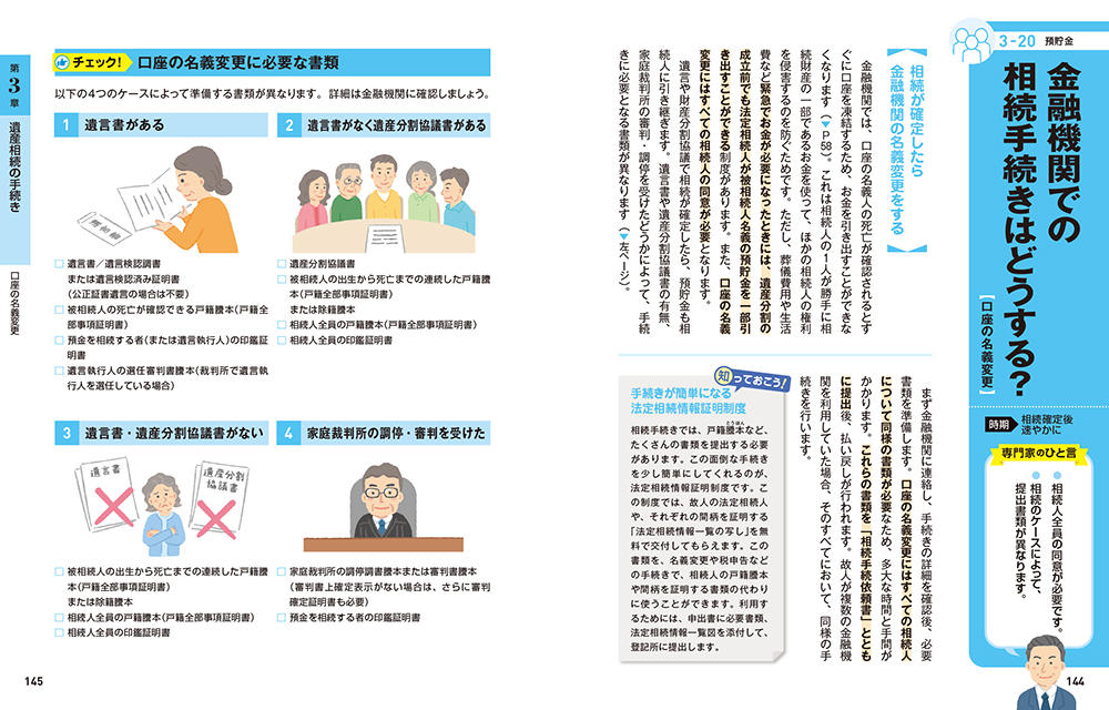 【内容例】 死亡診断書はいつまでにに提出?/火葬・埋葬には補助金が出る?/生前に受け取った財産は相続税の対象?/相続の話し合いがまとまらないときは?/遺族が受けられる補助制度や補助金は?/残りの人生にかかるお金はいくら?/今後の住まいはどうしたらいい?/お金の運用ってどうしたらいい?/キャッシュフロー表で今後の計画を立てよう など