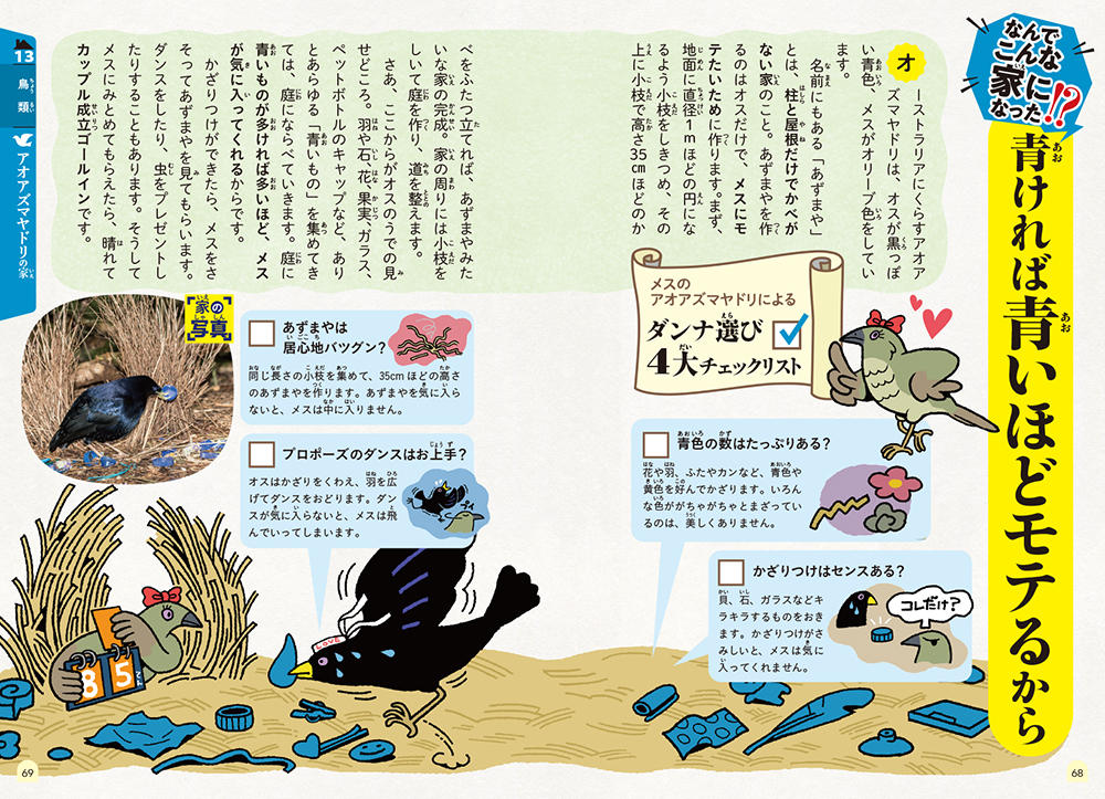 3章「ふしぎな家」 ◇アフリカツリスガラの家 ◇プレーリードッグの家 ◇シャカイハタオリの家 ◇ビーバーの家 ◇メジロダコの家 ◇シロヘラコウモリの家 ◇ショウドウツバメの家 ◇モリアオガエルの家 ◇剣闘士ガエル(ローゼンベルグアマガエル)の家 ◇カイツブリの家 ◇オナガサイホウチョウの家