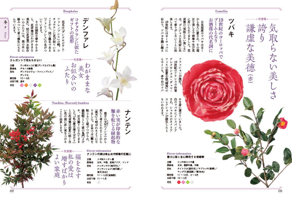 花屋や園芸店で人気の花約250種の、花言葉由来や、花と映画、花と文化、花と歴史など、様々な観点から「花」を掘り下げた本書。
