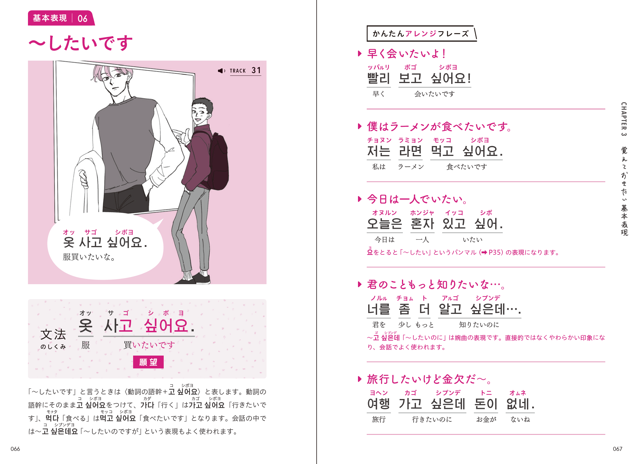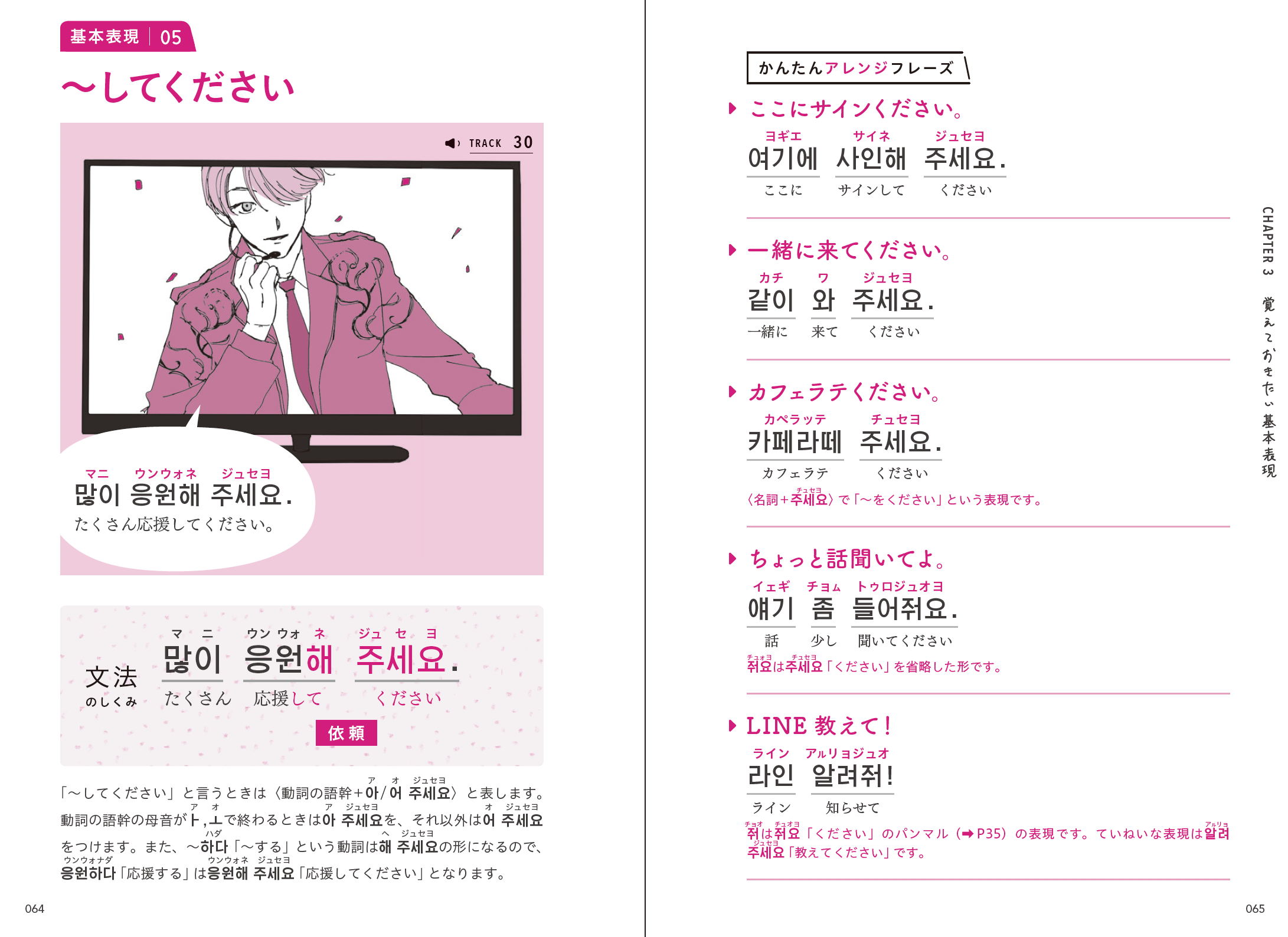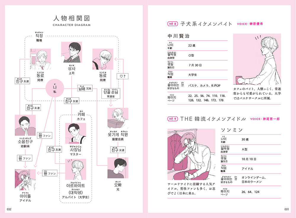 推しと一緒に韓国語をマスター! 大人気『イケメン英会話フレーズ』に続く、イケメン×語学書の第二弾!今回は韓国語をイケメンイラストと基礎から丁寧に解説。 日常生活や旅行ですぐに使えるフレーズを約400パターン収録! イラストはtwitterフォロワー5万人!雰囲気のあるイケメンイラストが大人気の松本ぼっくりさん。 日本語訳の音声担当は、音楽原作キャラクターラッププロジェクト”ヒプノシスマイク”でも話題の神尾晋一郎さん、榊原優希さん。耳からも学習意欲が高まります。