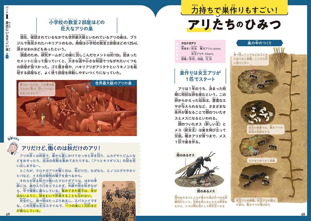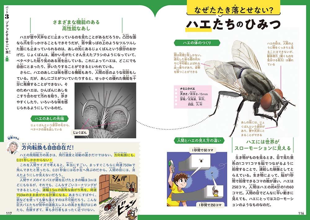 昆虫にまつわる最新の知識がいっぱい!図鑑ページも充実。