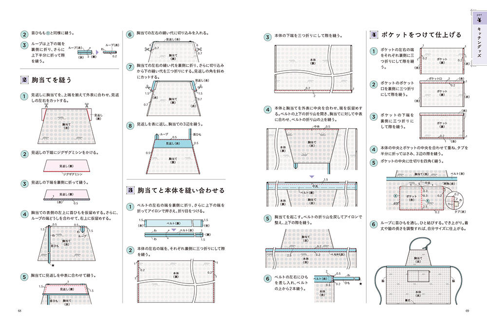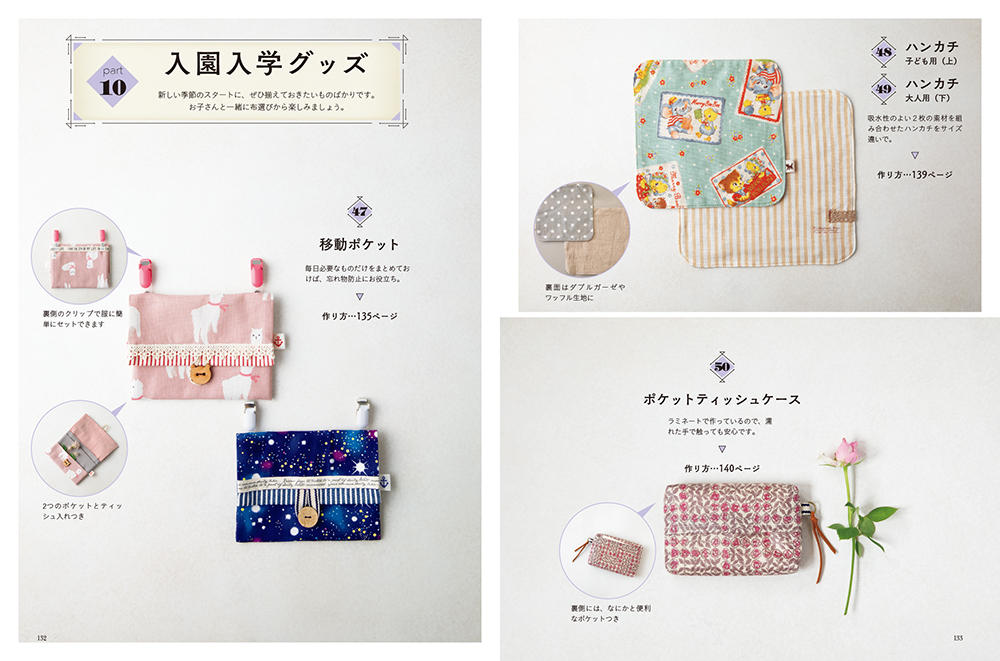 ・ミシンだけでなく、手縫いで作れる作品も収録。 ・布マスク、ポーチ、キッチン、サニタリー、入園入学、ベビーなど、さまざまなシーンで大活躍すること間違いなし!